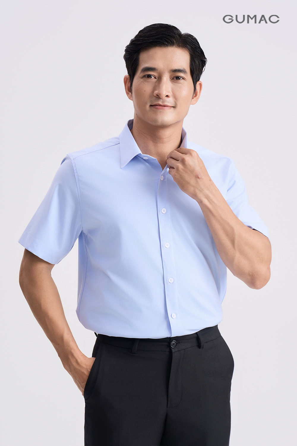 Áo sơ mi phom regular cơ bản, dễ mặc hằng ngày.