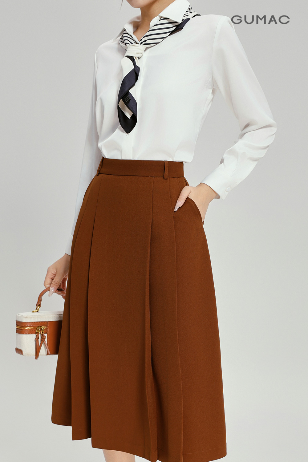 Thiết kế chân váy phom A cổ điển được phát triển trên tinh thần thanh lịch và chỉn chu, mang lại sự cân đối hài hòa cho tổng thể vóc dáng. Dáng váy xòe nhẹ từ phần eo xuống giúp tạo hiệu ứng mềm mại khi chuyển động, đồng thời mang lại cảm giác nữ tính và tinh tế.