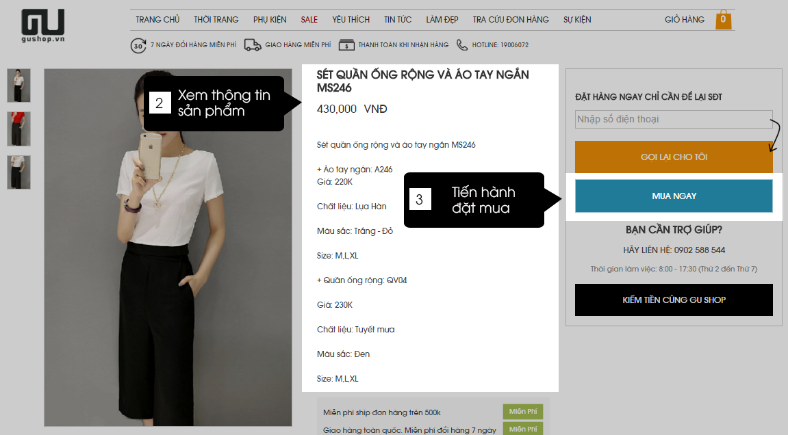 Bước 3: Click vào MUA NGAY để tiến hành đặt mua hàng