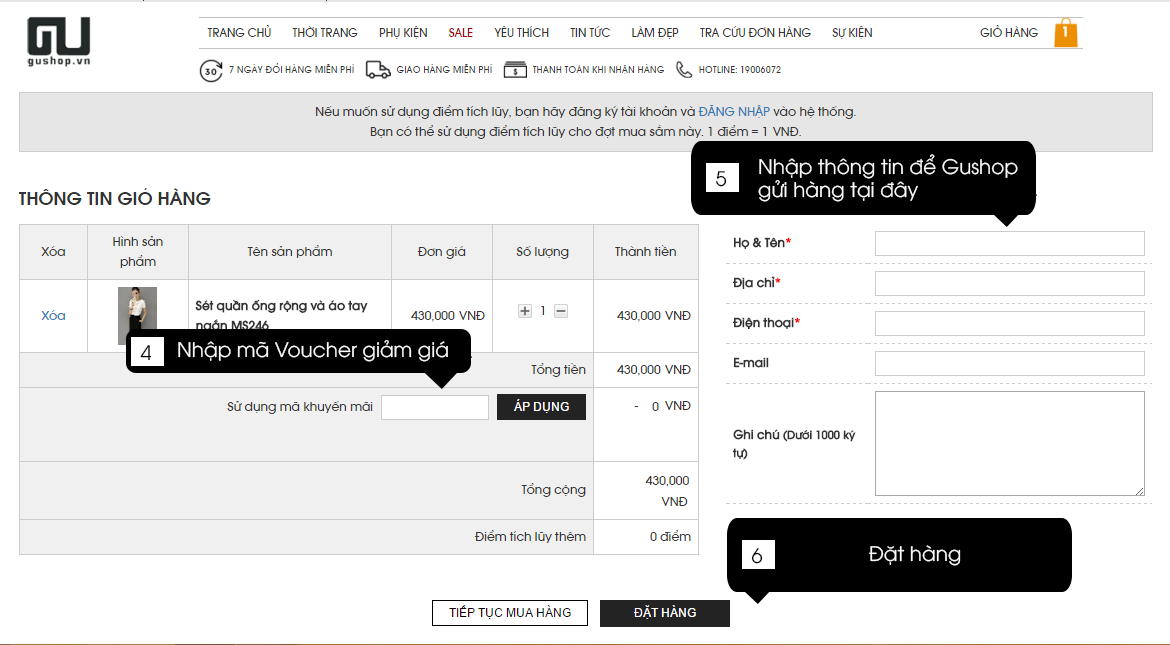 Hướng dẫn đặt hàng tại Gushop và sử dụng Voucher giảm giá giúp bạn có thể tiết kiêm tối đa chi phí mua sắm.