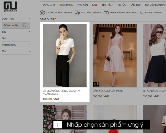 Xem tất cả sản phẩm có tại Gushop và click chọn mẫu bạn ưng ý muốn đặt mua.