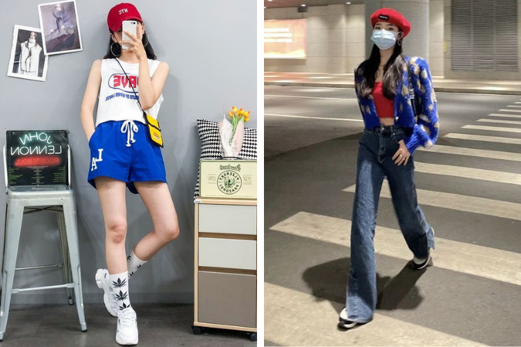 Phối màu màu đỏ đô cùng màu xanh coban là một tạo nên điểm nhấn cho outfit ví dụ như giày đỏ đô hoặc phụ kiện đỏ, để làm cho outfit trở nên sôi động và lôi cuốn. Sử dụng màu đỏ trên chiếc mũ sẽ giúp bạn làm nổi bật lên outfit mà bạn đang mặc. Đối với kiểu kết hợp áo crop trắng và quần đùi xanh coban thì sẽ tạo nên sự tinh tế nhưng không kém phần năng động.