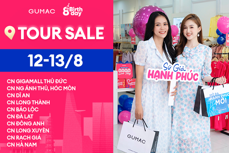 Mau mau cùng hội bạn, gia đình, chị em đến ngay GUMAC trong thời gian Tour Sale (từ 7h - 22h) để mua đồ ngay nha các chị yêu ơi!!! Số lượng sản phẩm sale CỰC KỲ GIỚI HẠN nên không mua liền là hết đó nghen!