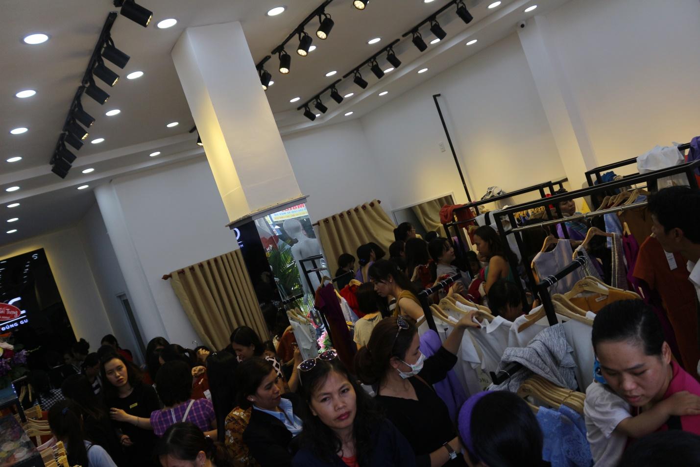 Khách hàng vã mồ hôi nhưng vẫn tươi cười khi chọn cho mình được rất nhiều bộ đồ đẹp của GUMAC