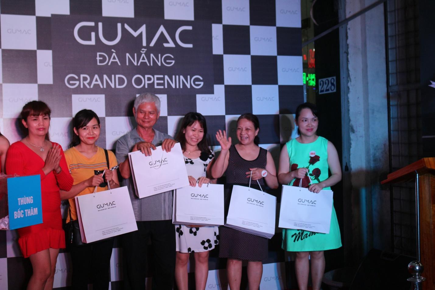 Niềm vui của các khách hàng khi lên sân khấu nhận quà tặng từ thương hiệu thời trang GUMAC trong chương trình bốc thăm trúng thưởng.