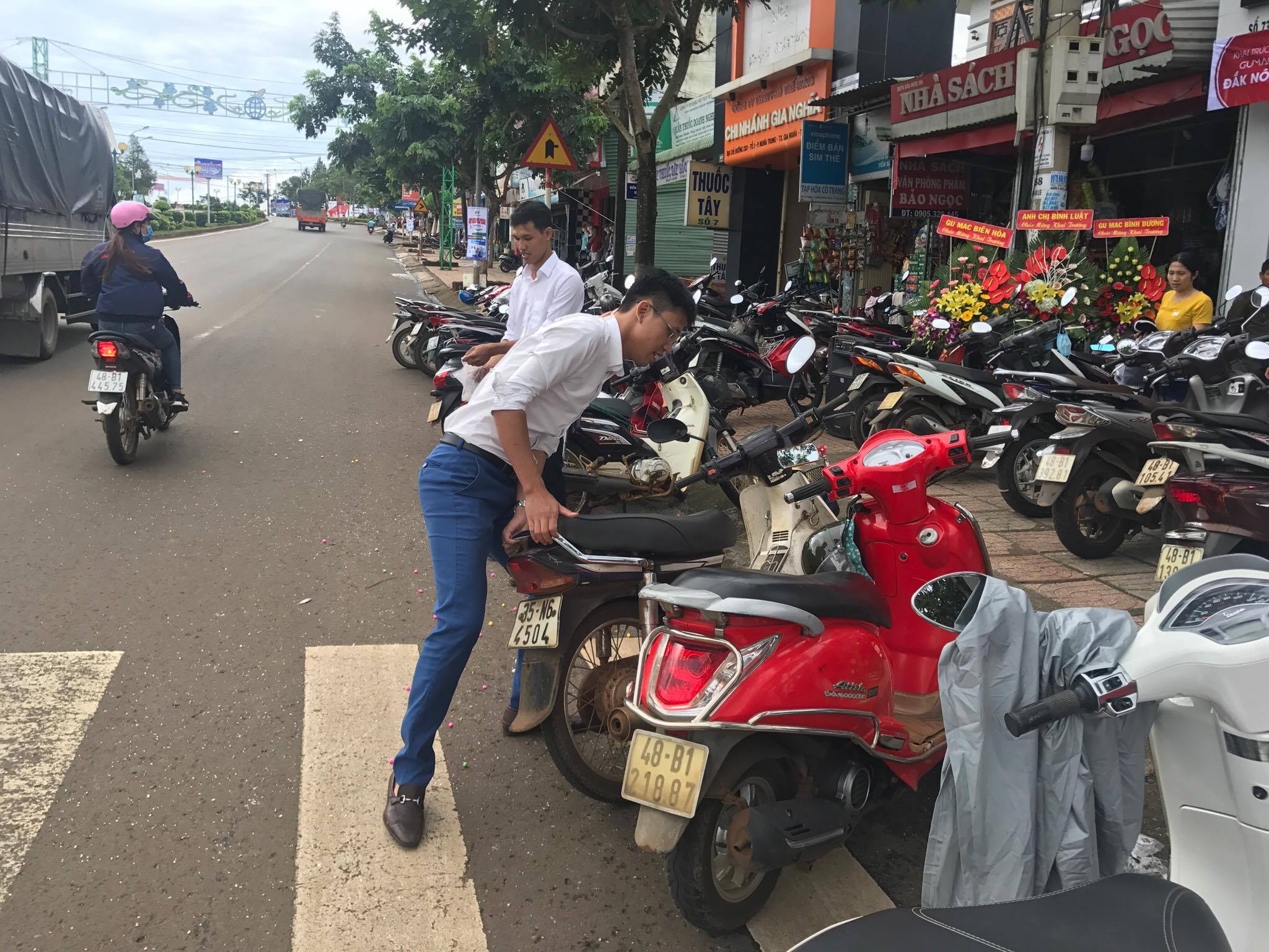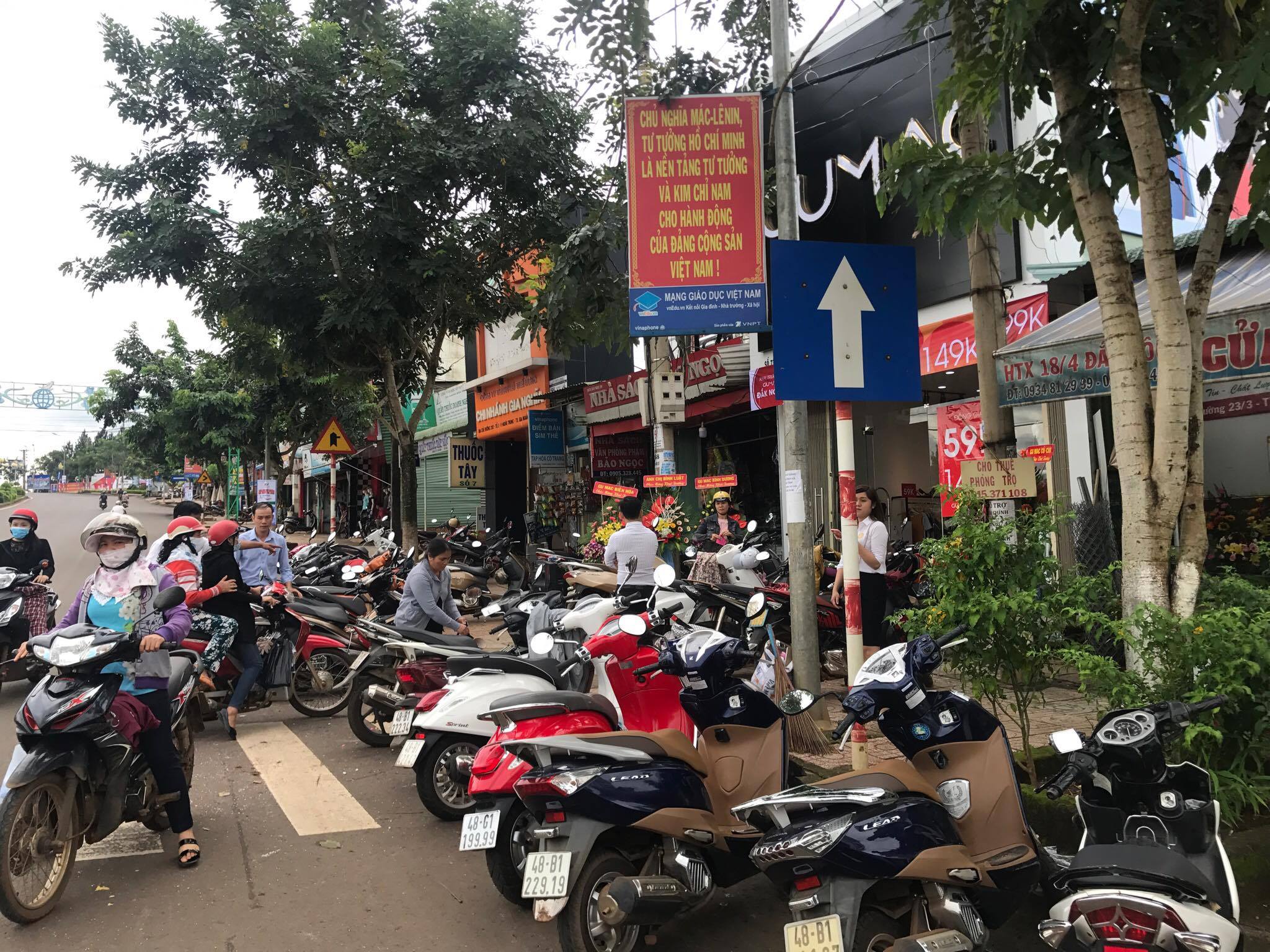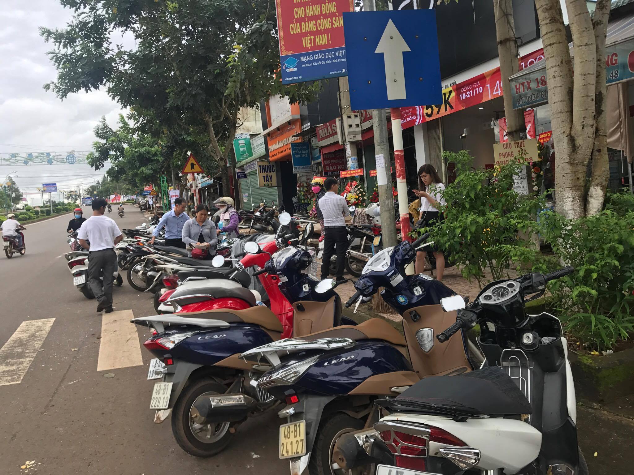 Xe của chị em đông đến nỗi bảo vệ không dắt kịp, và pải để lấn ra vỉa hè vì số lượng quá tải.