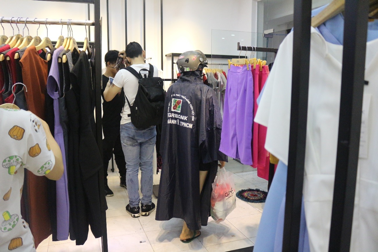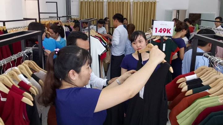 Mặc dù khách đến đông những không một ai phàn nàn gì cả, nét mặt phấn khởi cộng thêm sự vui sướng khi được tận tay cầm chiếc đầm hàng hiệu với giá cả phải chăng khiến nhiều chị em xúc động.