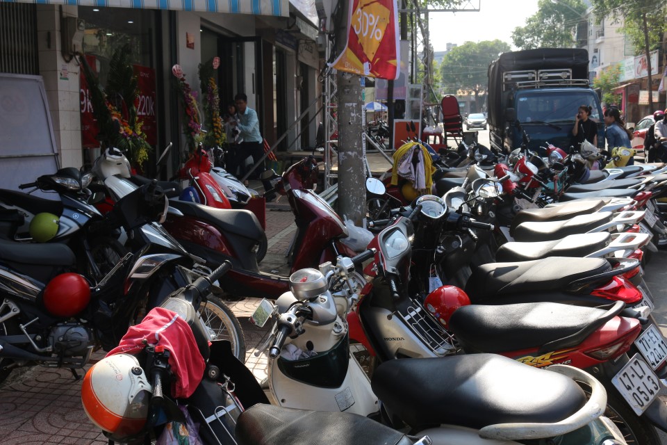 Hôm đó có đến 5 nhân viên giữ xe mà dường như kịp tay, ai cũng đuối vì số lượng xe quá tải.