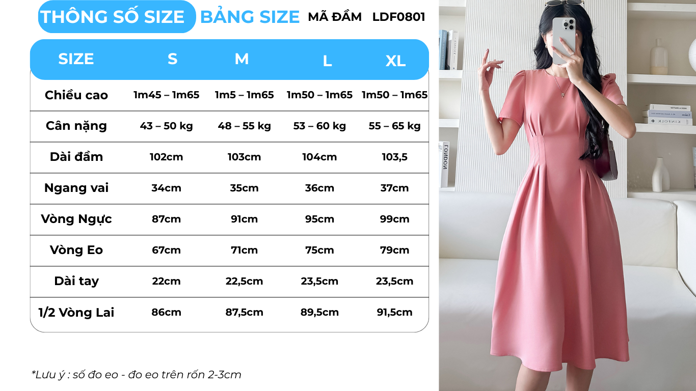 Thiết kế phối ly eo tinh tế giúp tạo điểm nhấn vòng 2, tôn dáng và mang lại vẻ nữ tính duyên dáng. Phom xoè nhẹ tạo cảm giác bay bổng, trẻ trung.