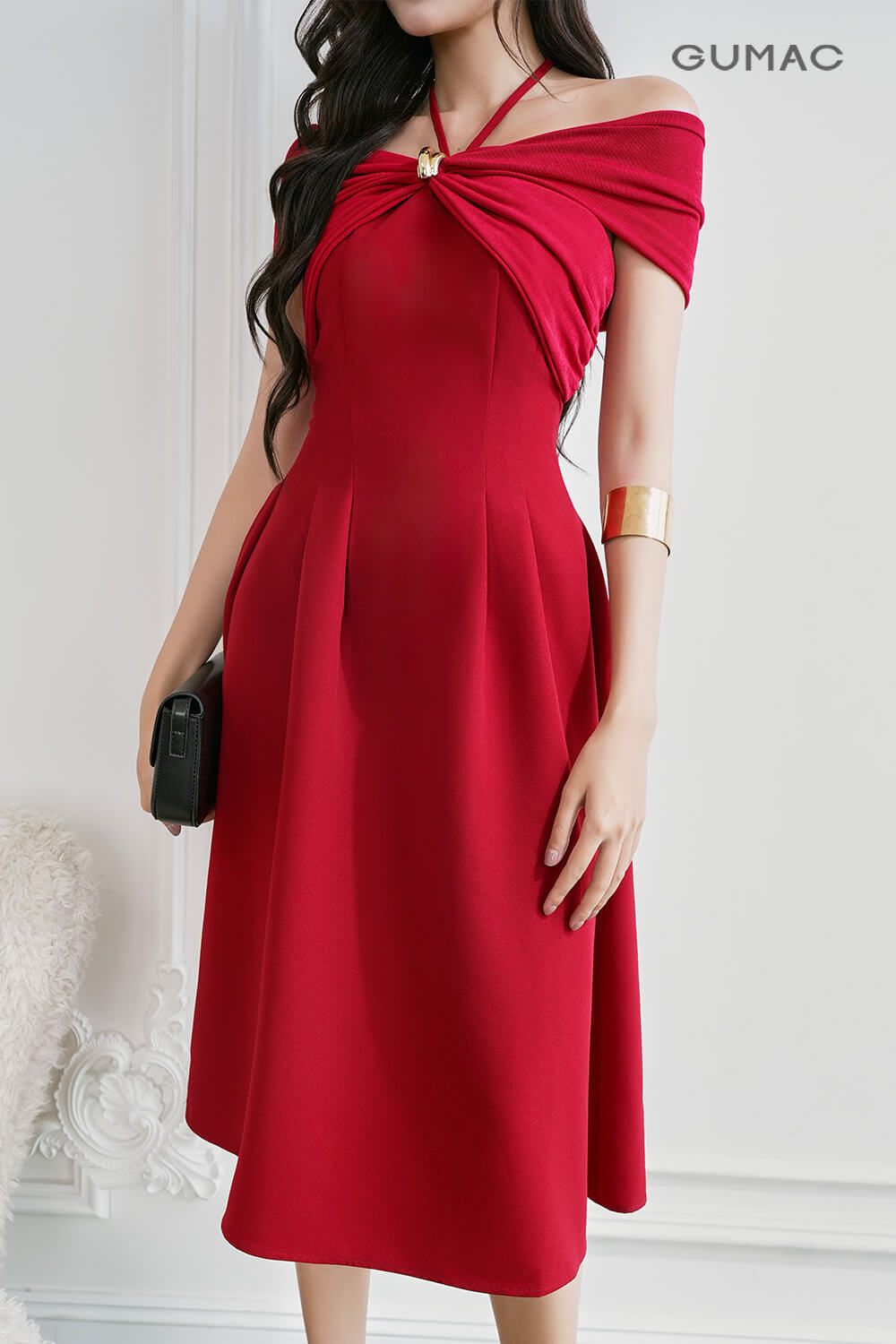 Thả lỏng bản thân để thoát khỏi sự nóng nực của mùa hè, chị đẹp GUMAC lựa chọn thiết kế cúp ngực thoáng mát, khéo léo tôn lên dáng hình thanh mảnh, tao nhã của mình. Sắc đỏ và đen luôn tạo cảm hứng để chị em tận hưởng những bữa tiệc tùng một cách quyến rũ, kiêu sa. Dáng xòe tôn dáng, chi tiết nút kim loại được đính khéo léo tạo điểm nhấn tinh tế, phần cúp ngực thun xoắn cách điệu giúp vòng 1 của nàng trông gợi cảm hơn.